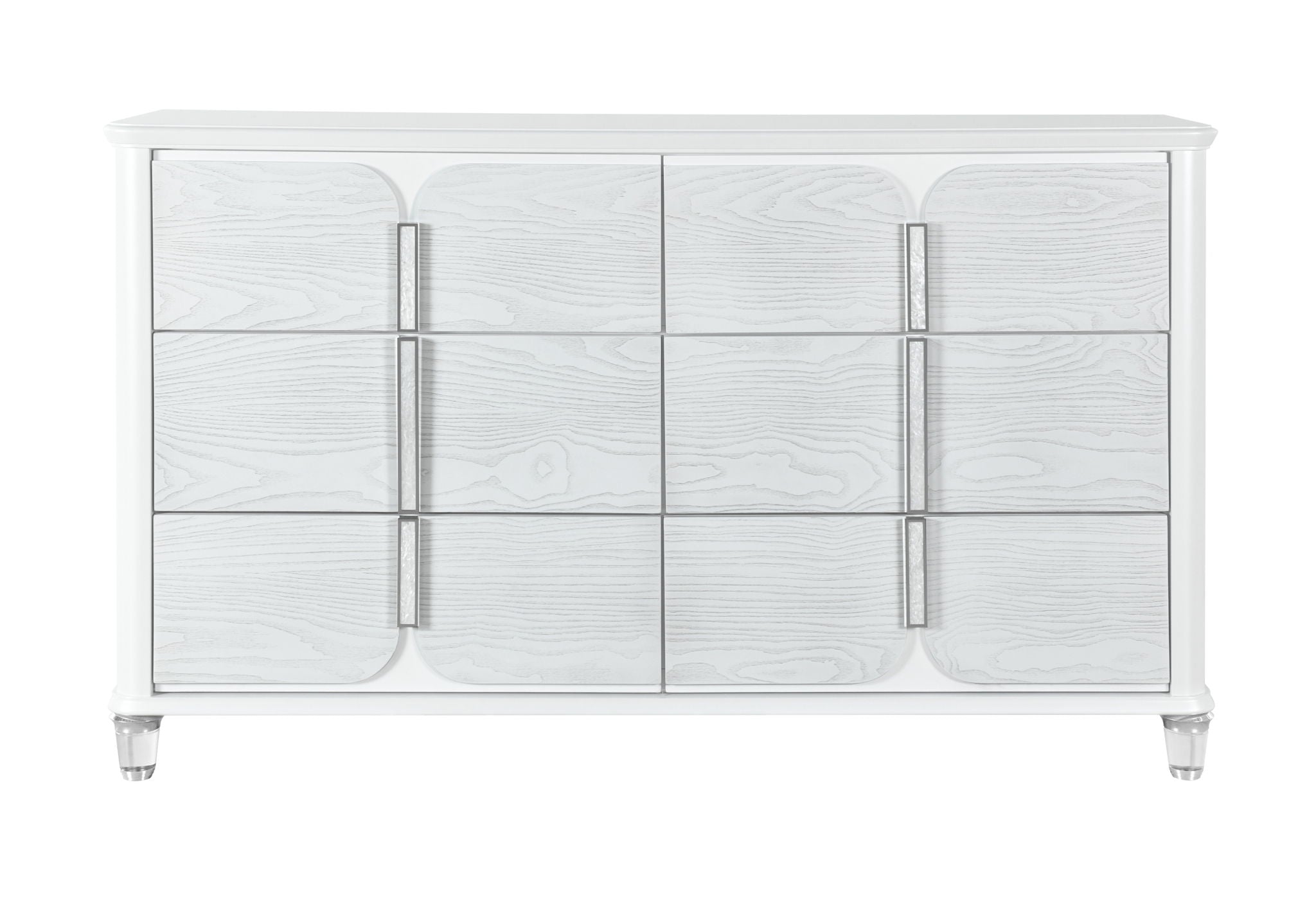 The Apollo Dresser combines functionality with flair, featuring textured drawer fronts and acrylic legs. Its sleek design and ample storage make it a stylish and practical addition to your space.
