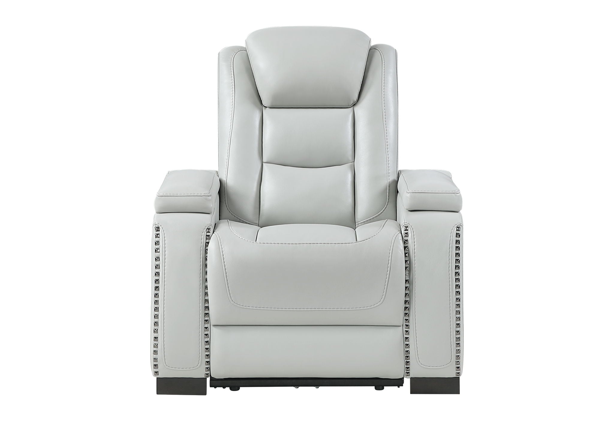 U8609 - Recliner With Power Headrest, LED And Bookshelf Arm - Gray